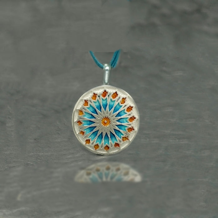 Colgante inspirado en la Alhambra, en plata de Ley 925, con esmalte al fuego en varias tonalidades.