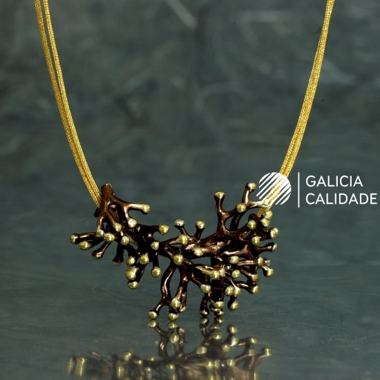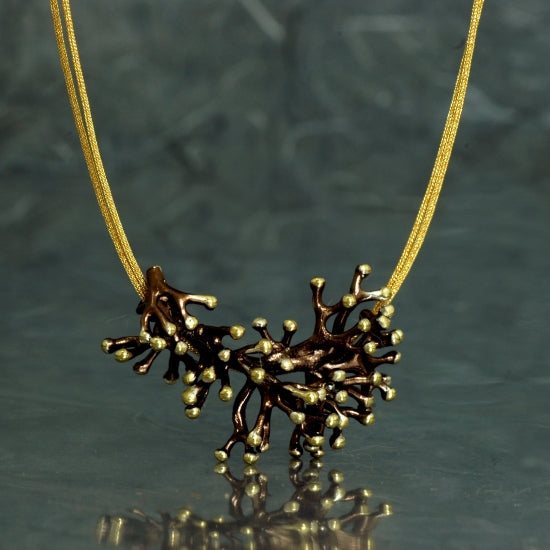 Este colgante inspirado en una anémona está elaborado en plata de Ley 925 con un elegante acabado galvanizado marrón chocolate y las puntas chapadas en oro.