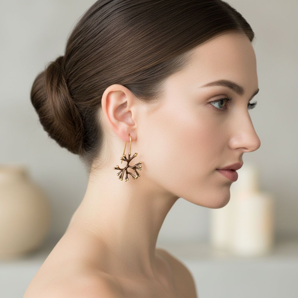 Estos elegantes pendientes de gancho fijo, con forma de anémona, están elaborados en plata de Ley 925 y presentan un sofisticado acabado galvanizado en marrón chocolate, con las puntas chapadas en oro. Inspirados en la belleza natural de las anémonas marinas, estos pendientes combinan lujo y estilo, ofreciendo un toque distintivo y elegante a cualquier atuendo.