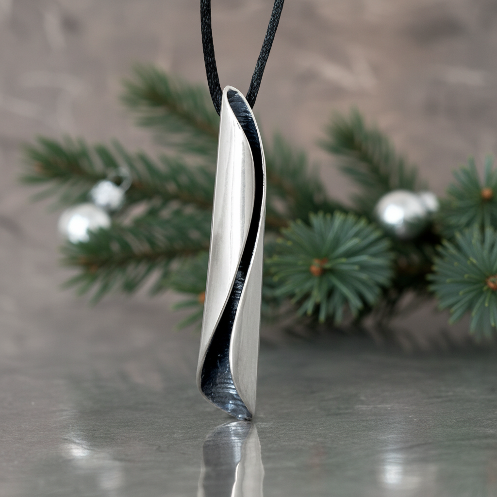 Colgante realizado alargado, con un acabado galvanizado negro.