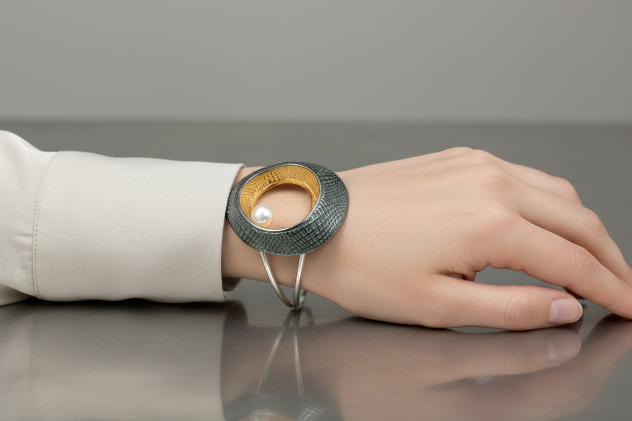 Pulsera rígida, de la colección Due, que, por su combinación de colores y acabados, resulta única y diferente.