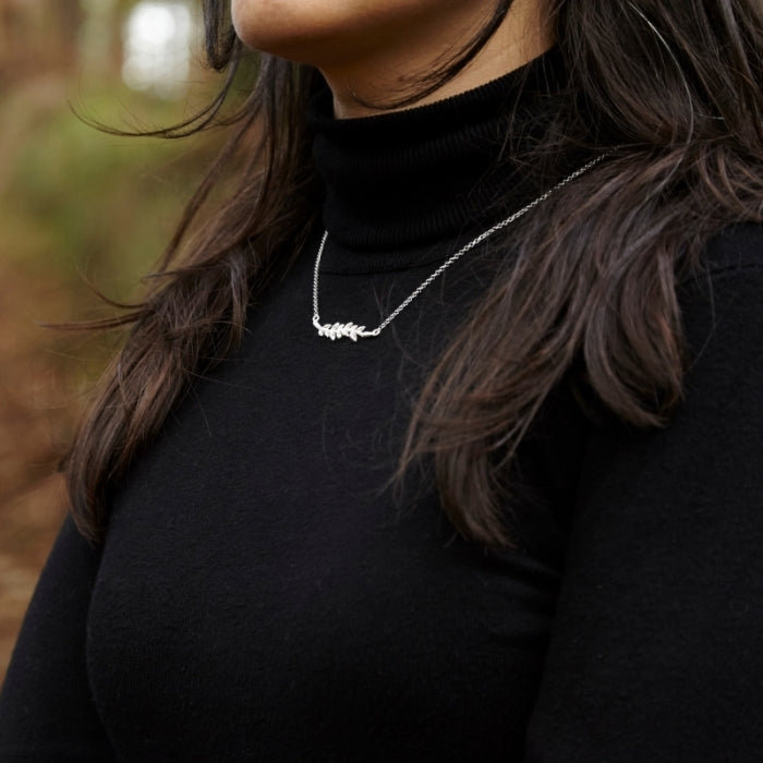 Gargantilla de la colección Fento (helecho en gallego), realizada en plata de Ley 925. Tiene una medida de unos 42 cm.