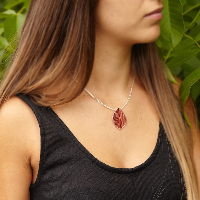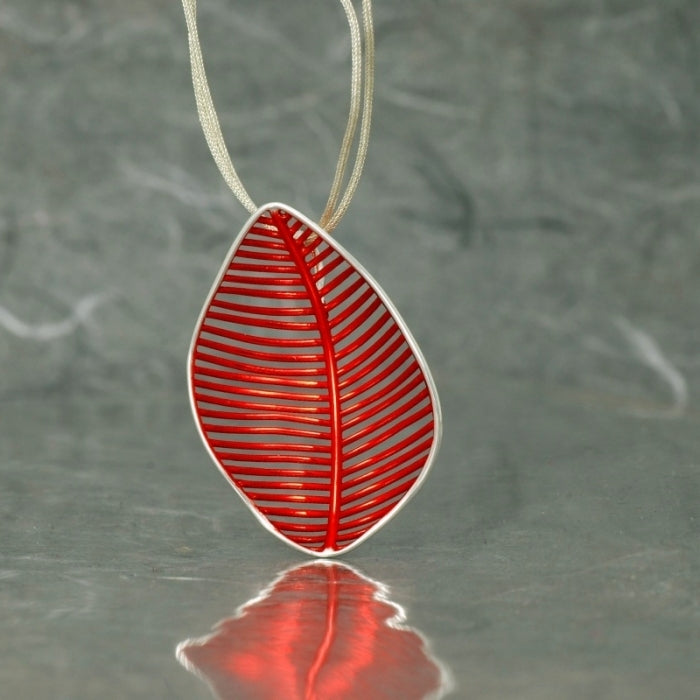 Colgante en plata de Ley 925, con acabado galvanizado rojo pasión en su interior y con los bordes pulidos brillo.