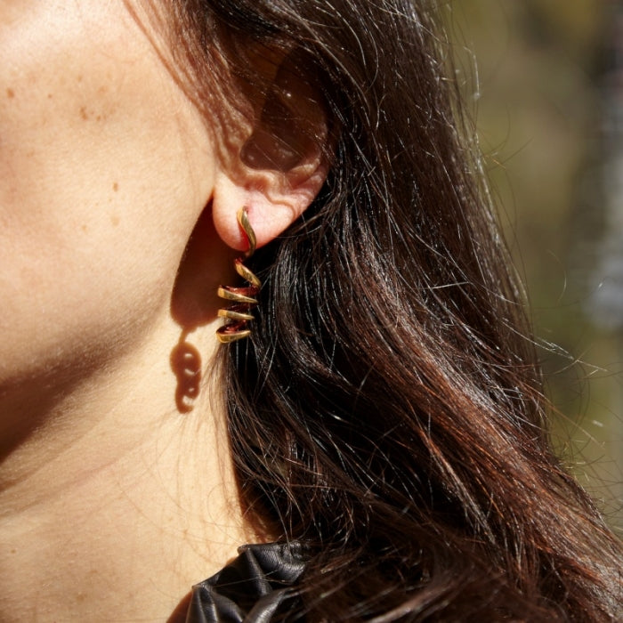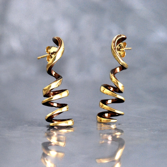 Pendientes de presión, largos, de la colección Omnia, con acabado chapado en oro y, en su interior, galvanizado marrón chocolate.