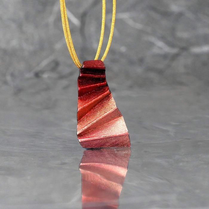 Colgante pequeño, de la colección Origami (con forma de papiroflexia), con pátina y pigmentos con efecto metálico rojizo irisado.